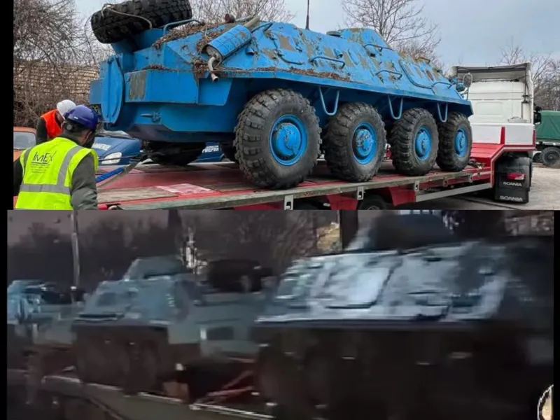 Zeci de transportoare blindate BTR-60 au ieșit din România spre Ucraina, așa cum reiese din înregistrarea video publicată pe o rețea de socializare. Blindatele sunt identice cu cele promise de Bulgaria pentru armata Ucrainei.