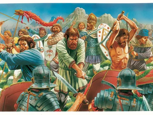 La următoarea invazie, romanii au modificat căștile soldaților, care au fost întărite cu o bandă metalică transversală pentru a conferi o șansă mai mare de supraviețuire împotriva acestei arme.