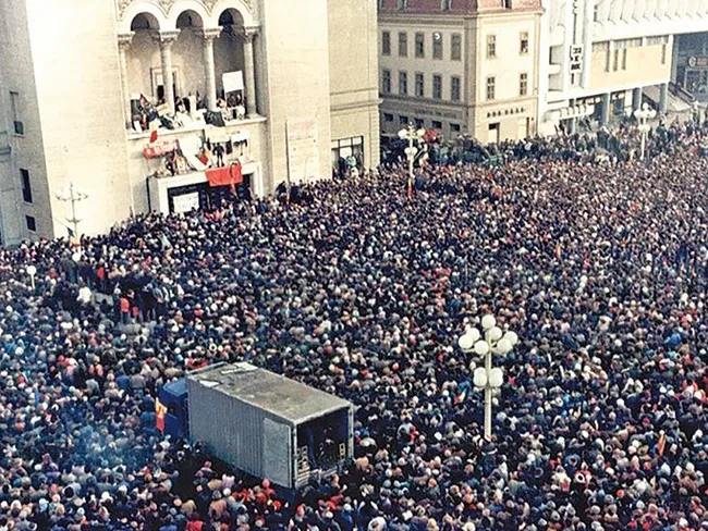16 decembrie 1989: Începe Revoluția la Timișoara. Cu o seară înainte, oamenii nemulțumiți că pastorul reformat László Tőkés urma să fie mutat în altă localitate, se adună în jurul catedralei din Piața Maria să protesteze.