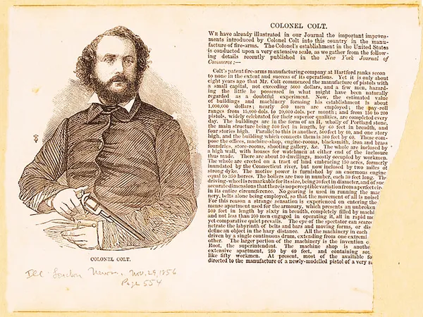 Un an mai târziu, Colt înființează, pe malul râului Conneticut, cea mai mare fabrică privată de armament, iar, până în 1856, compania putea produce 150 de arme pe zi.