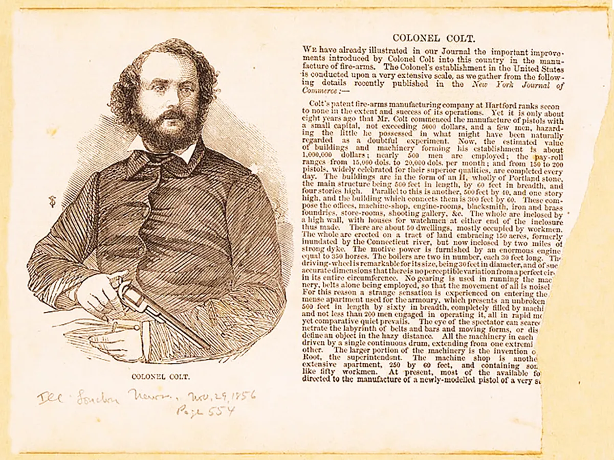 Ca să-și facă reclamă, Colt a angajat un artist care să picteze tablouri cu sportivi și exploratori care vânează animale exotice în America.