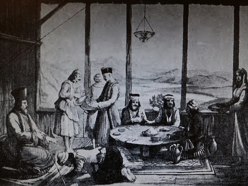 „Boierii romîni merg de la unii la alții să bea cafea, să fumeze și să stea de vorbă. [...] atâta timp cât fumul eșea din preciosul mamoule (probabil imamea), se păstra cea mai desăvârșită liniște.”