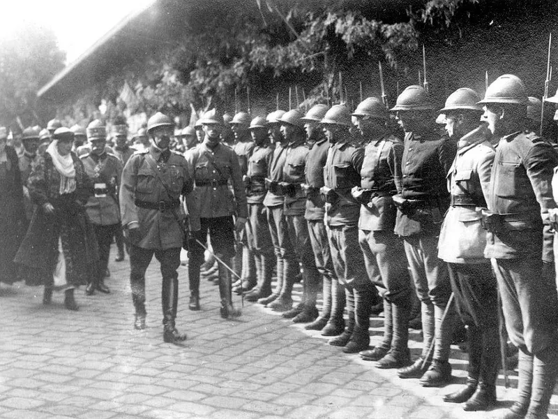 Regele Ferdinand inspectând trupele în timpul Primului Război Mondial - Foto: asociatiapleniceanu.com