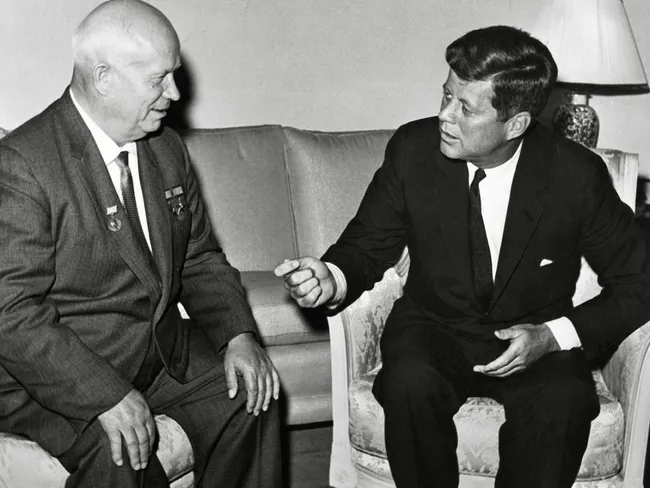 Iar spectrul războiului nucleare n-a fost niciodată mai amenințător ca în octombrie 1962, în timpul „crizei rachetelor din Cuba” care a opus cele două mari puteri ale vremii, SUA, condusă de președintele John F. Kennedy, și URSS, al cărei lider era, după moartea lui Stalin, în 1953, Nikita Hrușciov.
