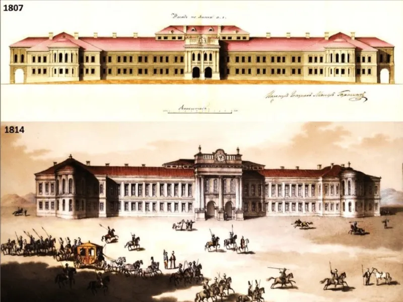 Palatul din Iași al lui Alexandru Moruzi, în 1807 și șapte ani mai târziu, în 1814 - Foto: researchgate.net