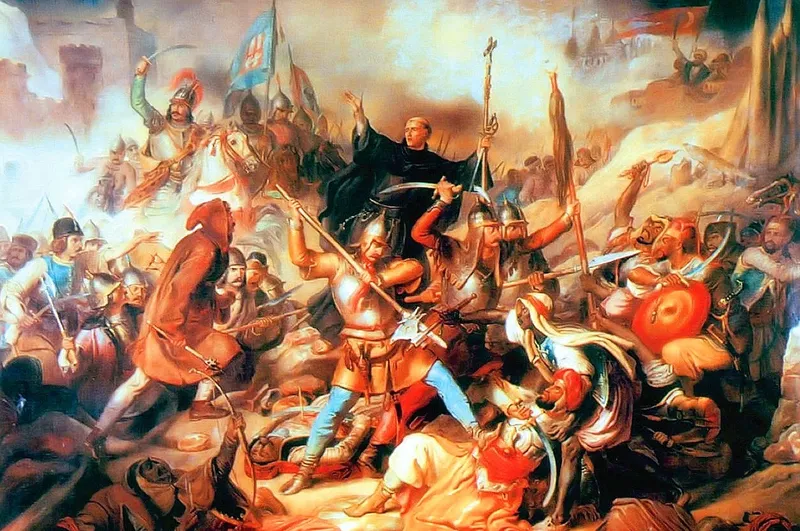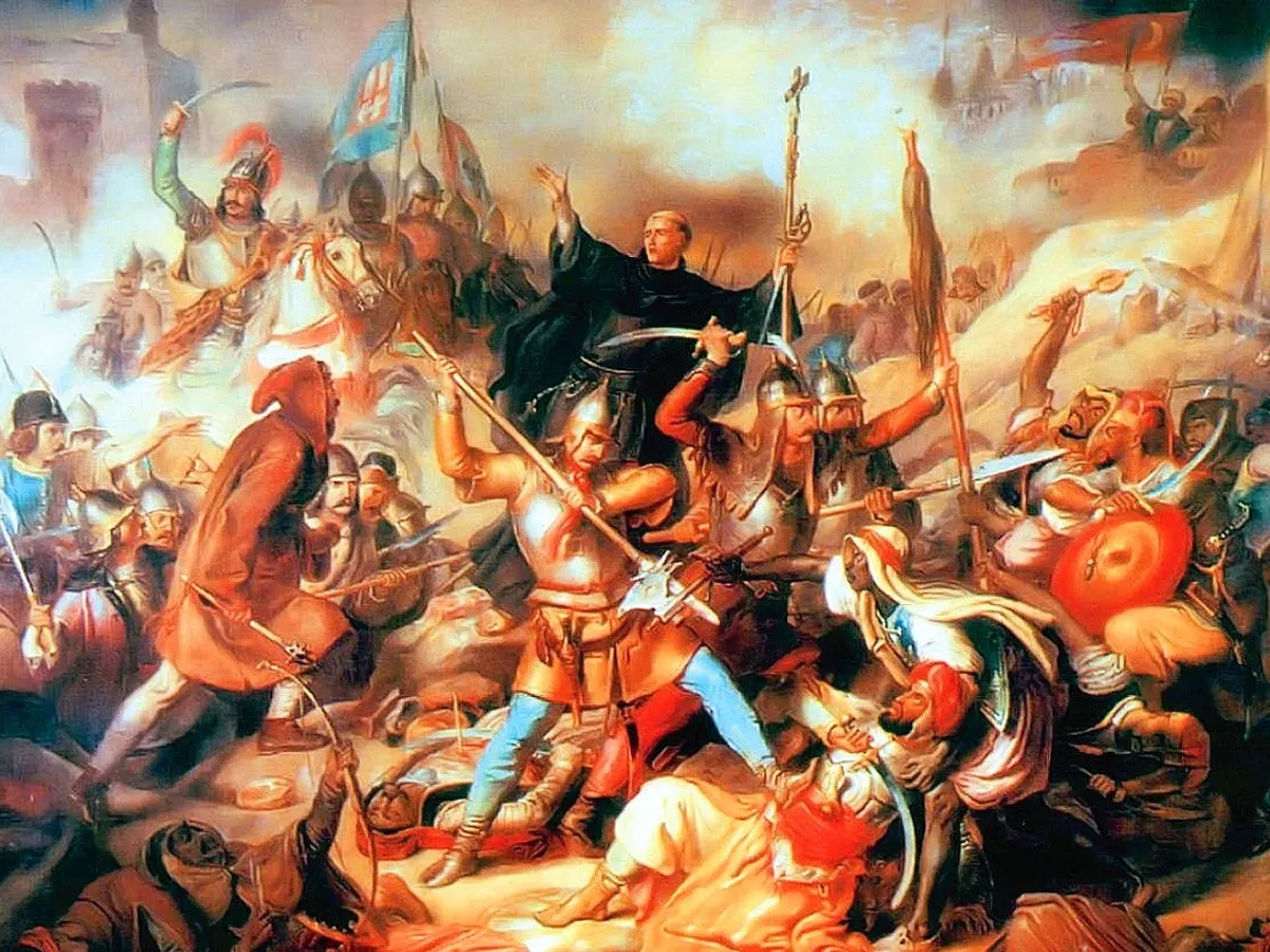 Pictură ce înfățișează rezistența eroică a oștirii comandate de Iancu de Hunedoara în fața atacatorilor otomani ai cetății Belgradului, în 1456 - Foto: Arhiva