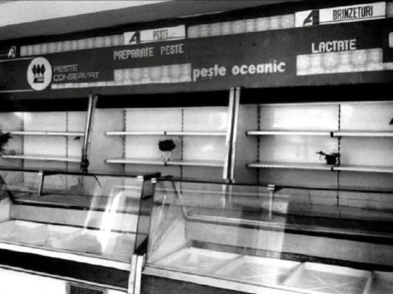 Interiorul unei alimentare ceaușiste în 1989 - Foto: mizeriaistoriei.wordpress.com