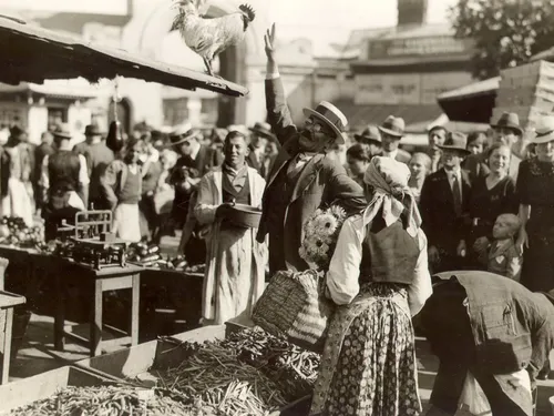 Acum peste un secol nu existau supermarketuri sau mall-uri, dar erau piețe și, peste asta, erau mulți negustori ambulanți.