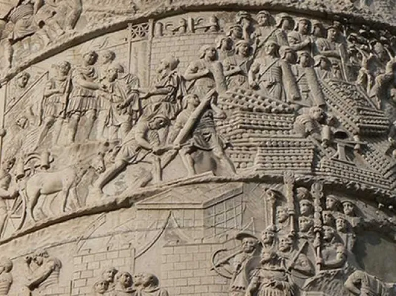 Columna lui Traian conține scene în care este arătată transportarea uriașei prăzi de război de către romani - Foto: reporterpenet.ro
