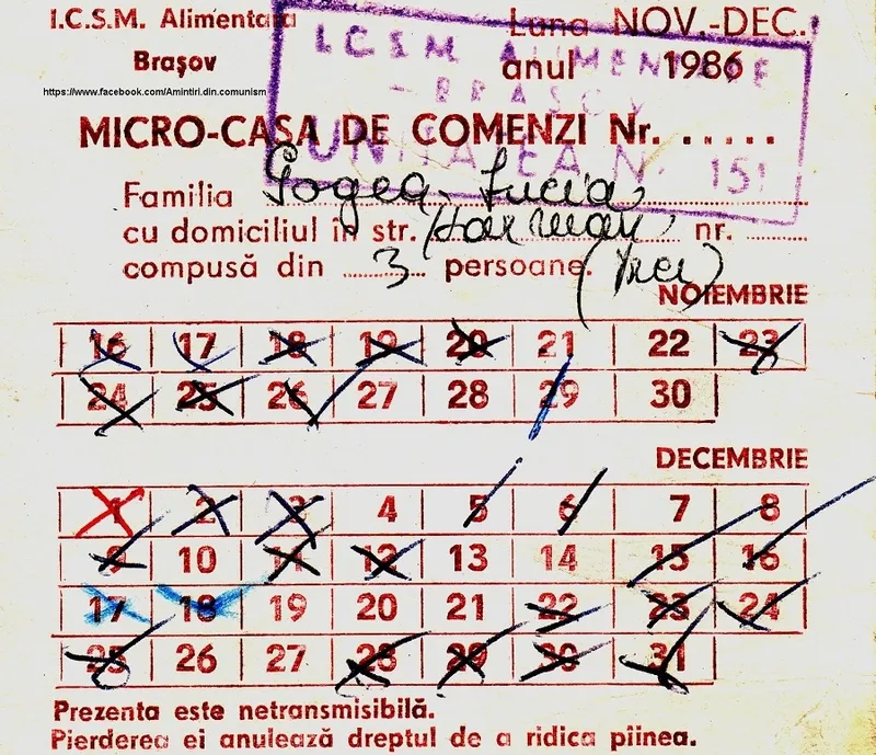 O cartelă de alimente din timpul lui Ceaușescu este ceva ce nostalgii acelor vremuri au uitat sau vor să uite că a existat. Dincolo de relaxarea din primii ani ai regimului Ceaușescu a existat o lungă și rece „noapte”, una în care se ascundeau atât creaturile fioroase ale Securității și ale fricii, cât și spectrul foametei, la propriu.