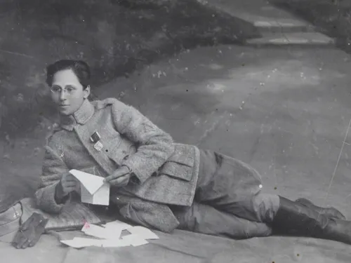 După ce îl vizitează pe unul dintre frații ei, Nicolae, de mai multe ori pe linia frontului, se decide să participe activ la luptele armatei române împotriva invadatorilor germani.
