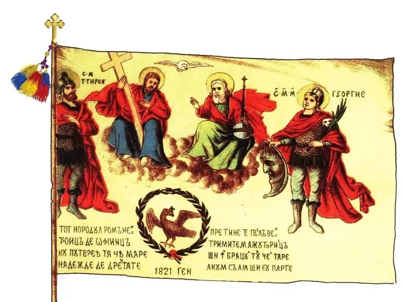 Proclamaţia lui Tudor Vladimirescu de la Padeş, de la 23 ianuarie 1821, s-a rostit sub flamurile steagului revoluţionar, lucrat sub indicaţia lui Tudor şi a sfetnicului săi Ilarion, episcopul Argeşului, la Mănăstirea Antim din Bucureşti, de către monahul David, scrie adevarul.ro.