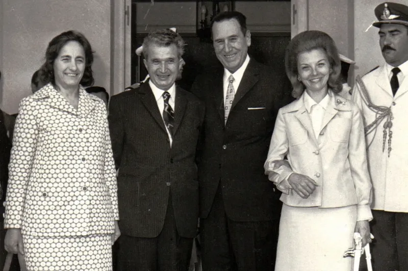Nicolae și Elena Ceaușescu, în vizita din 1974, în Argentina, alături de președintele țării, Juan Peron și de soția acestuia, Isabel Peron - Foto: Fototeca online a comunismului românesc - cota 44/1974