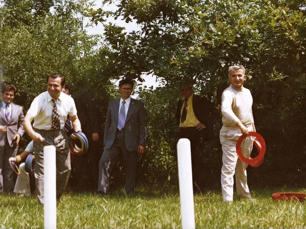 Iliescu, în centrul imaginii, împreună cu Nicolae și Elena Ceaușescu, într-un moment de relaxare cu ocazia vacanței acestora în Moldova, în vara lui 1976 - Foto: Fototeca online a comunismului românesc