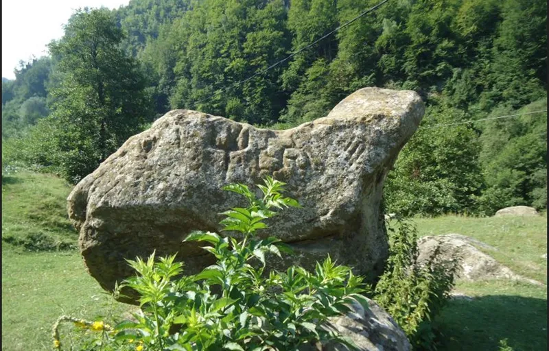 Piatra scrisa de la Cotârgași-Suceava, în Carpaţii Orientali, are formă paralelipipedică, având lungimea de 3 metri, înălţimea de doi metri şi lăţimea de 1,5 metri.