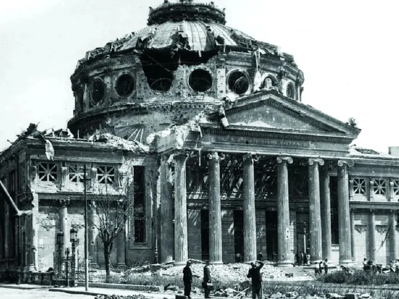 Ateneul Român după bombardamentul aviației germane din 24 august 1944 - Foto: historia.ro
