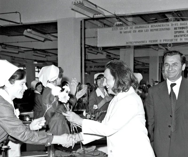 Ion Iliescu și Elena Ceaușescu, la o vizită de lucru a lui Nicolae Ceaușescu la Fabrica de Confecții din Iași, 31 iulie 1976 - Foto: Agerpres