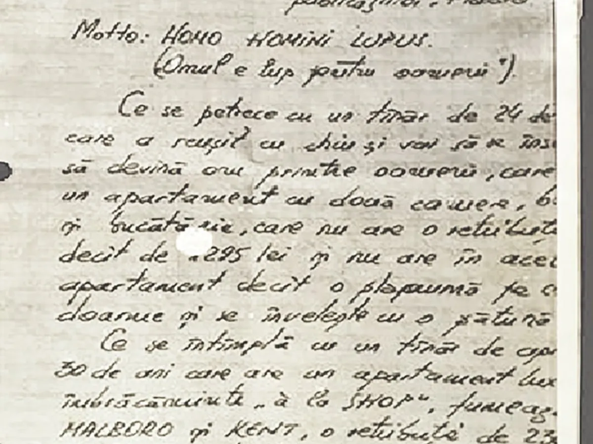 Am apelat la ajutorul multora, dar degeaba. Nici CC al PCR nu mi-a răspuns la aproximativ zece memorii pe care le-am trimis. (...) Nu-s om rău, n-am făcut rău nimănui, dar vreau și eu să trăiesc!“, a scris tânărul C.I., în scrisoarea adresată publicației „Flacăra“.