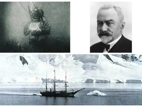 Momentul îl prezintă pe Emil Racoviță în prima fotografie subacvatică ce s-a păstrat până astăzi, realizată de fotograful francez Louis Marie Auguste Boutan.