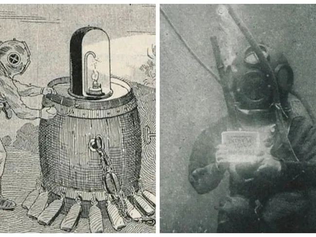 Acesta era închis într-o cameră etanşă metalică, manevrată de un scafandru cu echipament greu de scufundare, alimentat cu aer de la suprafață. Aşadar, o treabă periculoasă şi complicată.