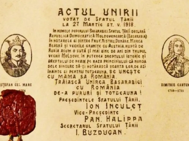Actul Unirii Basarabiei cu România, de la 27 martie 1918 - Foto: arhiva