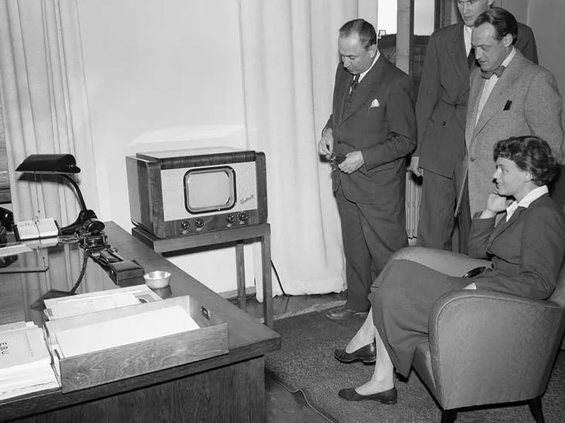 Primele astfel de ecrane receptoare de imagini de televiziune, fuseseră amplasate în trei locuinţe şi având forma unui pătrat cu latura de 28 de cm, aveau să capteze primele imagini transmise de la o staţie special amenajată.