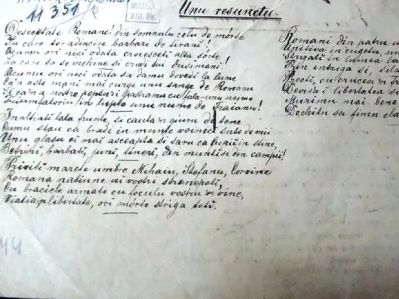 Dar cum s-a ajuns la imnul pe care-l știm astăzi? Poetul Andrei Mureșanu a scris într-o noapte, dintr-o suflare, versurile poeziei „Un răsunet” - în forma originală „Unu resunetu” - devenită, ulterior, „Deșteaptă-te, române!” și căuta o melodie potrivită pentru vibrantul mesaj național din text