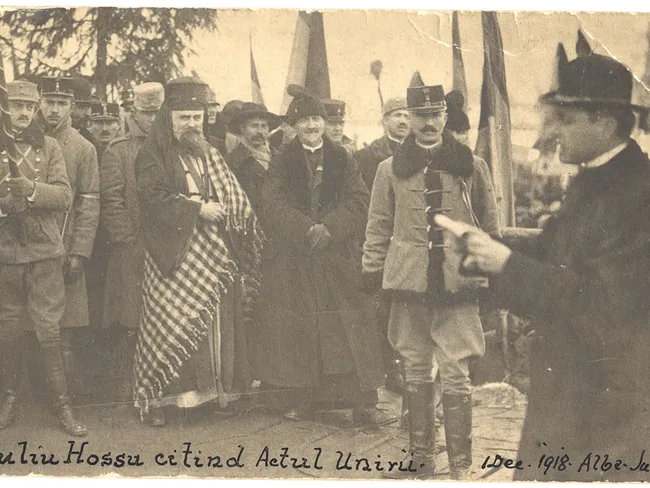 În 18 noiembrie/1 decembrie 1918, cei 1.228 de delegați hotărăsc unirea Transilvaniei cu România. Rezoluția de Unire citită de Vasile Goldiș a fost votată în unanimitate de delegați.