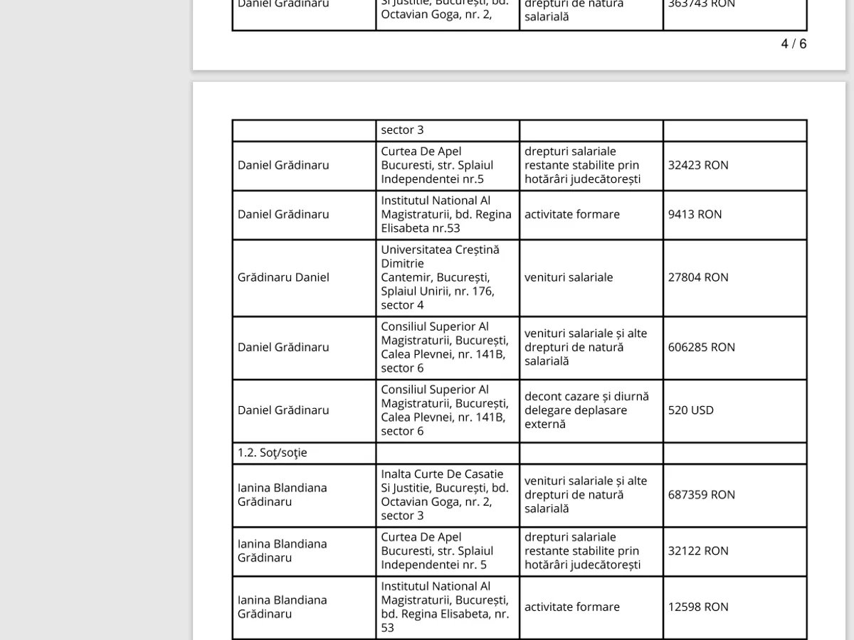 Daniel Grădinaru a avut 363.000 lei drepturi salariale de la CSM. El a primit 606.000 de lei „venituri salariale și alte drepturi de natură salarială”.