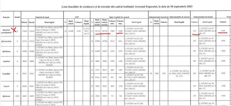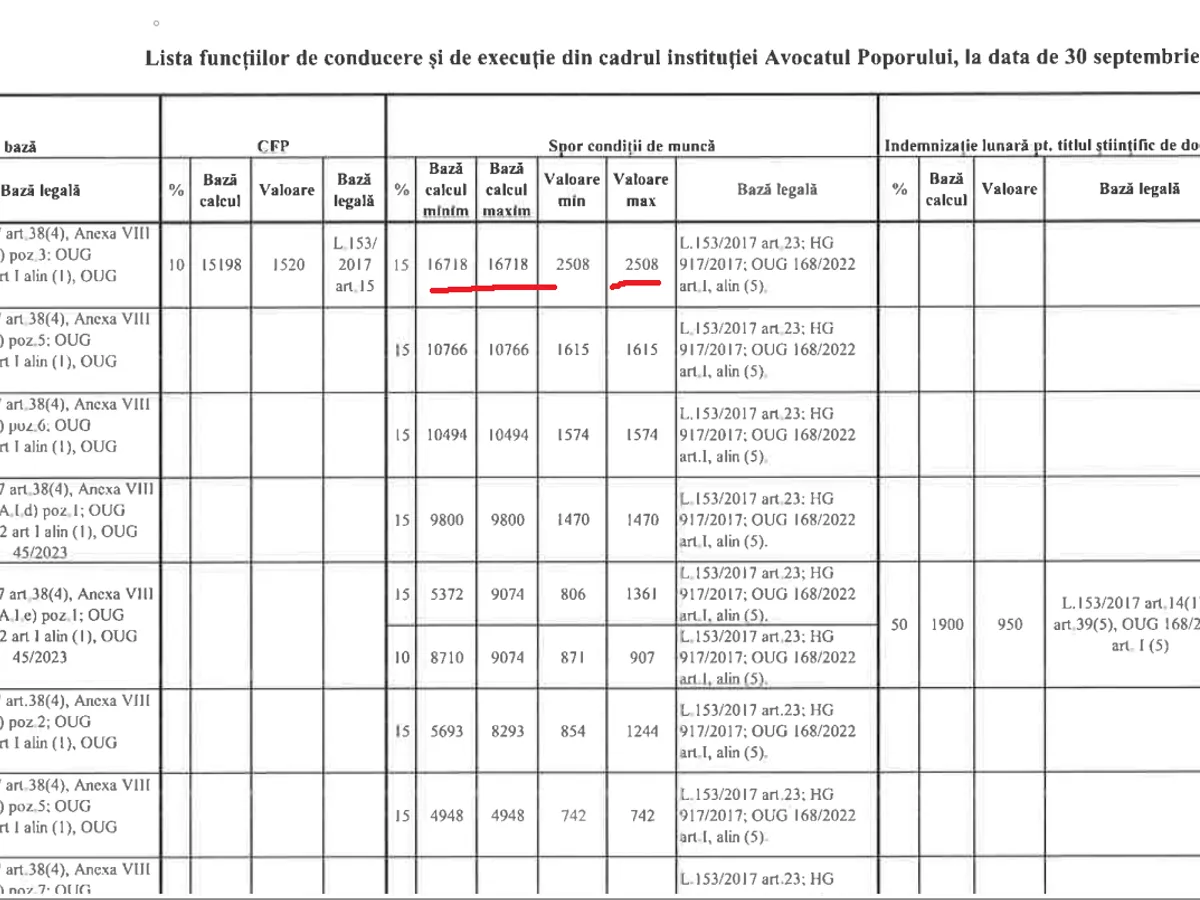 La Avocatul Poporului, directorul cel mare, care își desfășoară activitatea în cele mai bune condiții, care are mașină la scară, biroul cel mai mare și secretară, primește 2.500 de lei spor de condiții vătămătoare de muncă, după cum vedeți în documentul de mai jos.