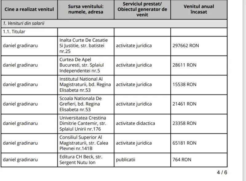Grădinaru nu are niciun leu în cont deși anul trecut a câștigat sume mari de bani din șapte surse: