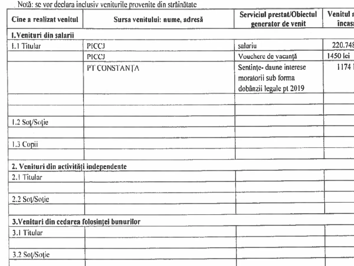 Comparând declarația de avere depusă în 2020 cu cea depusă în 2019, se observă o crește importantă a veniturilor.