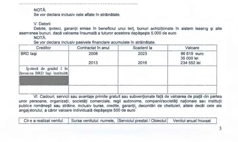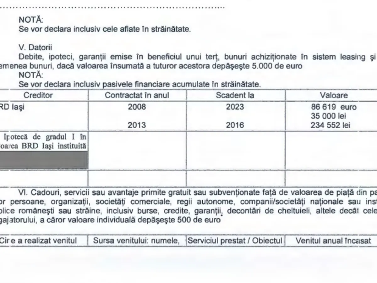 În declarația de avere din 2016 (care se referă la operațiunile financiare de până la finalul lui 2015), împrumutul nici măcar nu mai apare.