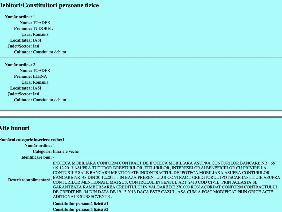 În declarația de avere depusă la jumătatea anului 2014, Toader deja menționează că achitase câteva zeci de mii de lei și mai avea mai puțin de 235.000 de lei de achitat.