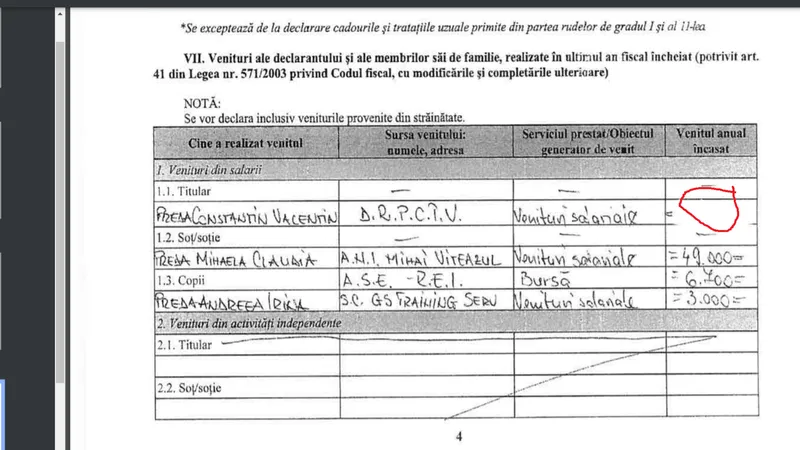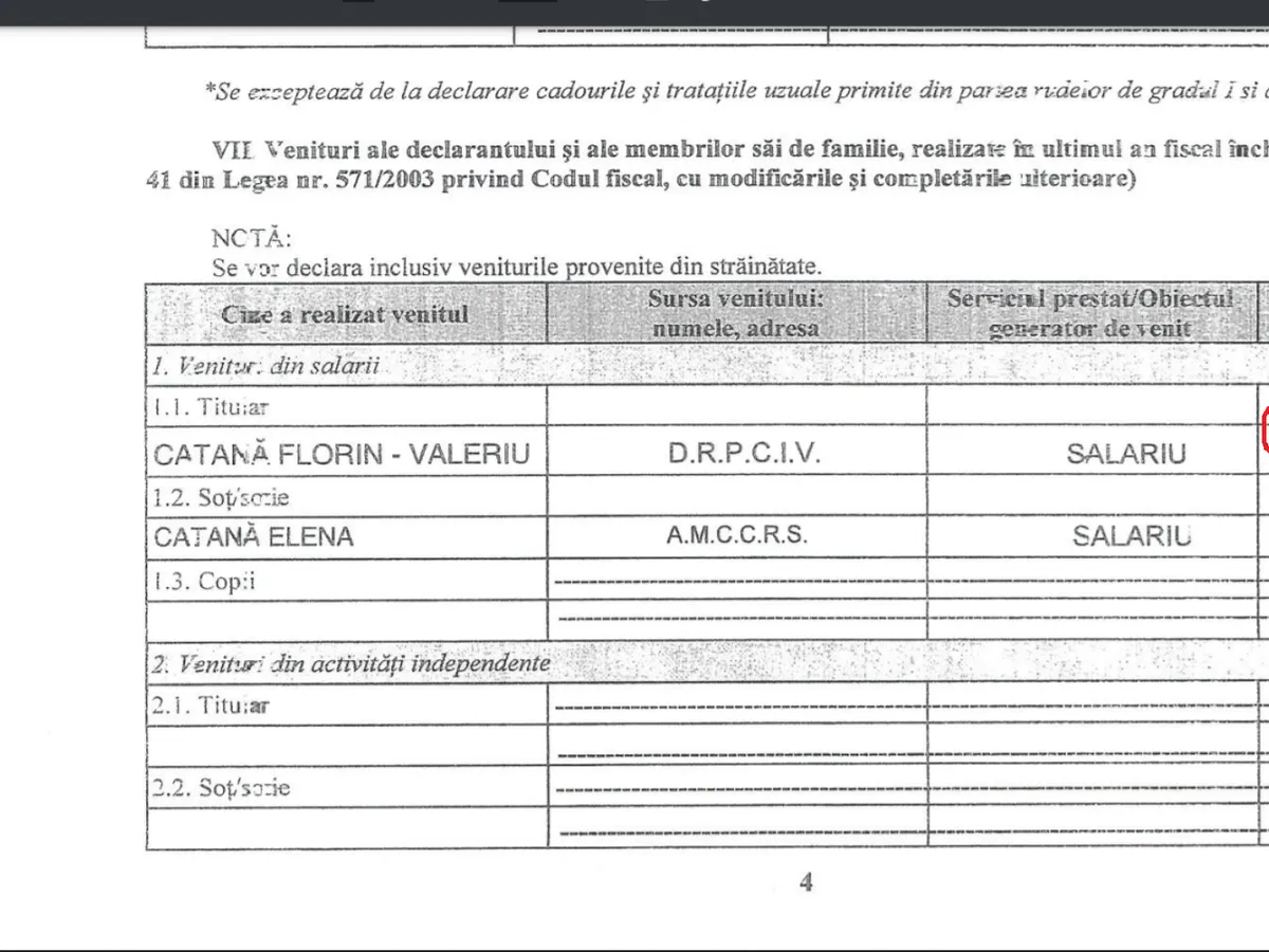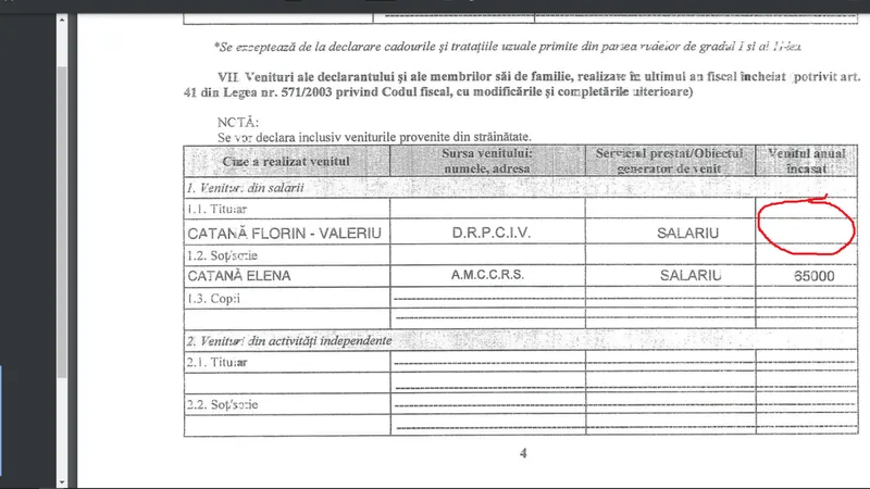 După un asemenea scandal, te-ai fi așteptat la o transparență totală din partea instituției. Dar nu este așa. Șeful Serviciului Public Comunitar regim permise este Catană Florin Valeriu. El nu a trecut nimic la categoria venituri din declarația de avere.