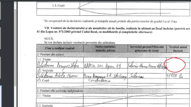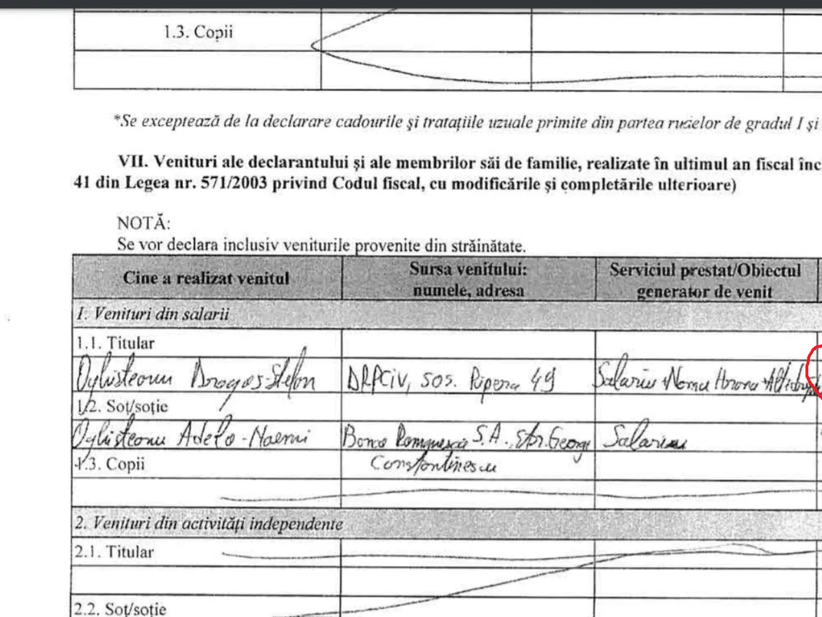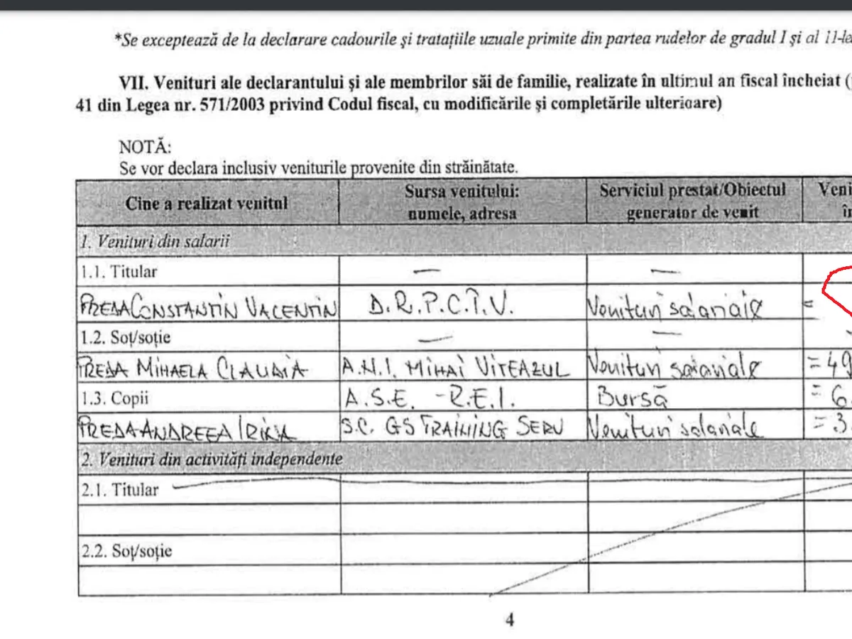Șef serviciu Oghiștean Dragoș Ștefan a scris „salariu” urmat de alte cuvinte imposibil de deslușit. A scris suma de bani pe care o câștigă. Apoi, aceasta a fost ștearsă după ce se vede mai jos.