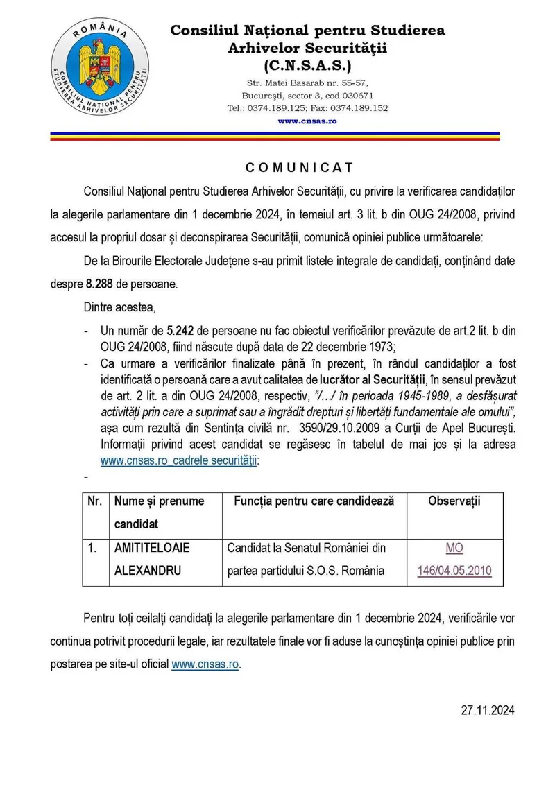 Informatorul este Amititeloaie Alexandru și e candidat din partea Dianei Șoșoacă.