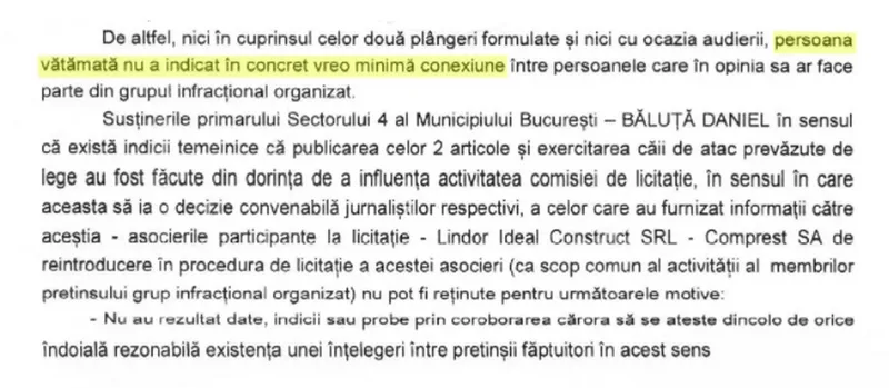 În plus, DIICOT a remarcat, conform aceleiași Ordonanțe, faptul că nu e adevărat ce susține primarul, care spunea că și firmele sau procurorii de la alte structuri au ceva cu Primăria Sectorului 4. Din cele scrise chiar de ei, procurorii pun sub semnul întrebării nu doar lipsa datelor, ci și felul în care Daniel Băluță vede relațiile dintr-o societate democratică.
