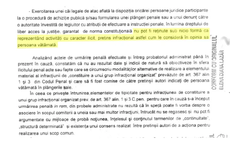 DIICOT a notat că reclamațiile unei firme, în acest caz reclamațiile către Consiliul Naţional de Soluţionare a Contestaţiilor, „nu pot fi reținute sub nicio formă ca reprezentând activități cu caracter ilicit, pretins infracțional, așa cum le consideră în opinia sa” primarul Daniel Băluță.