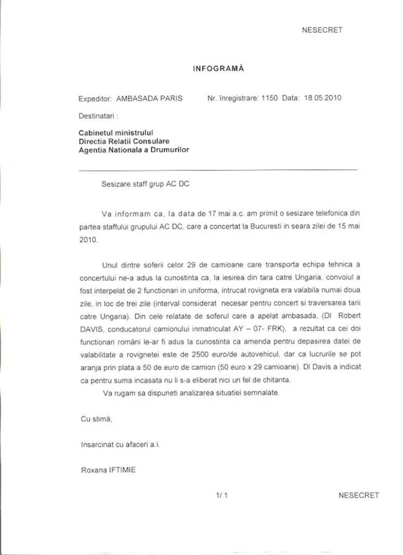 DOCUMENT Dosarul mitei de la vamă. 2 funcționari ar fi cerut șpagă de la trupa AC/DC