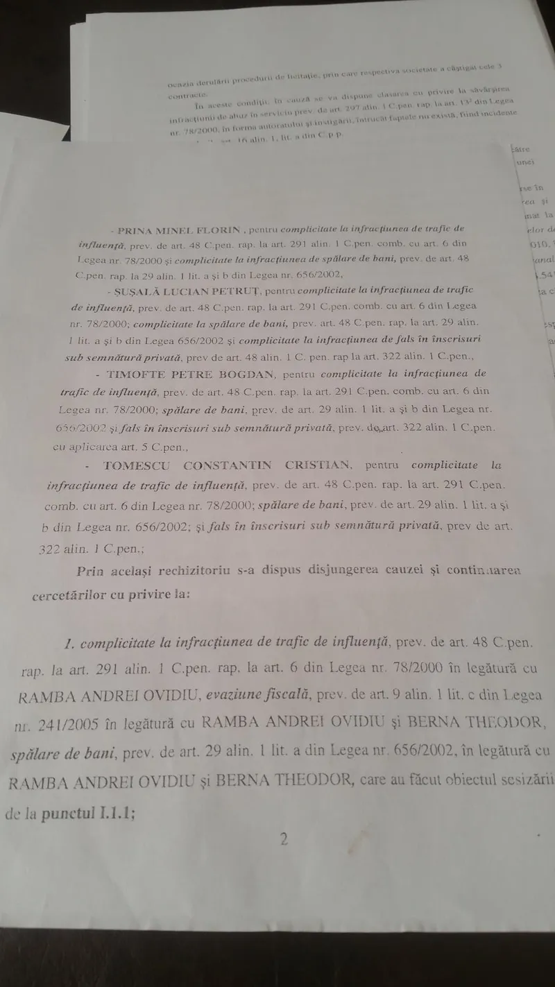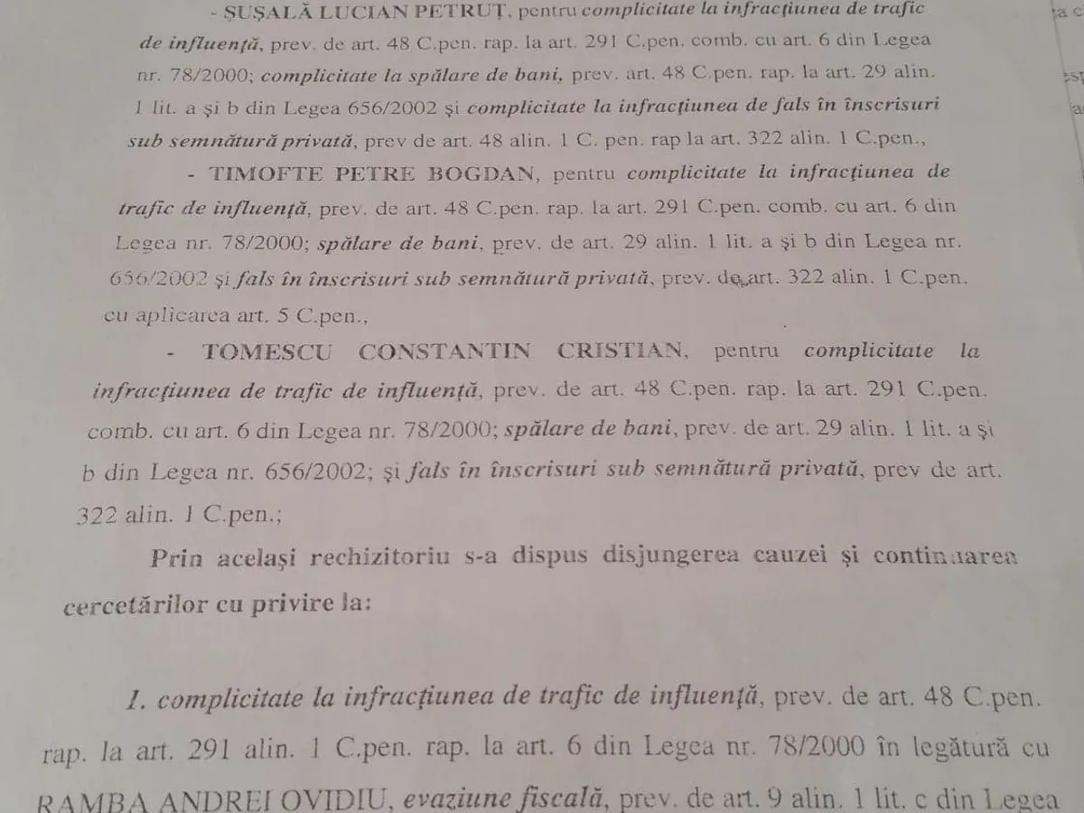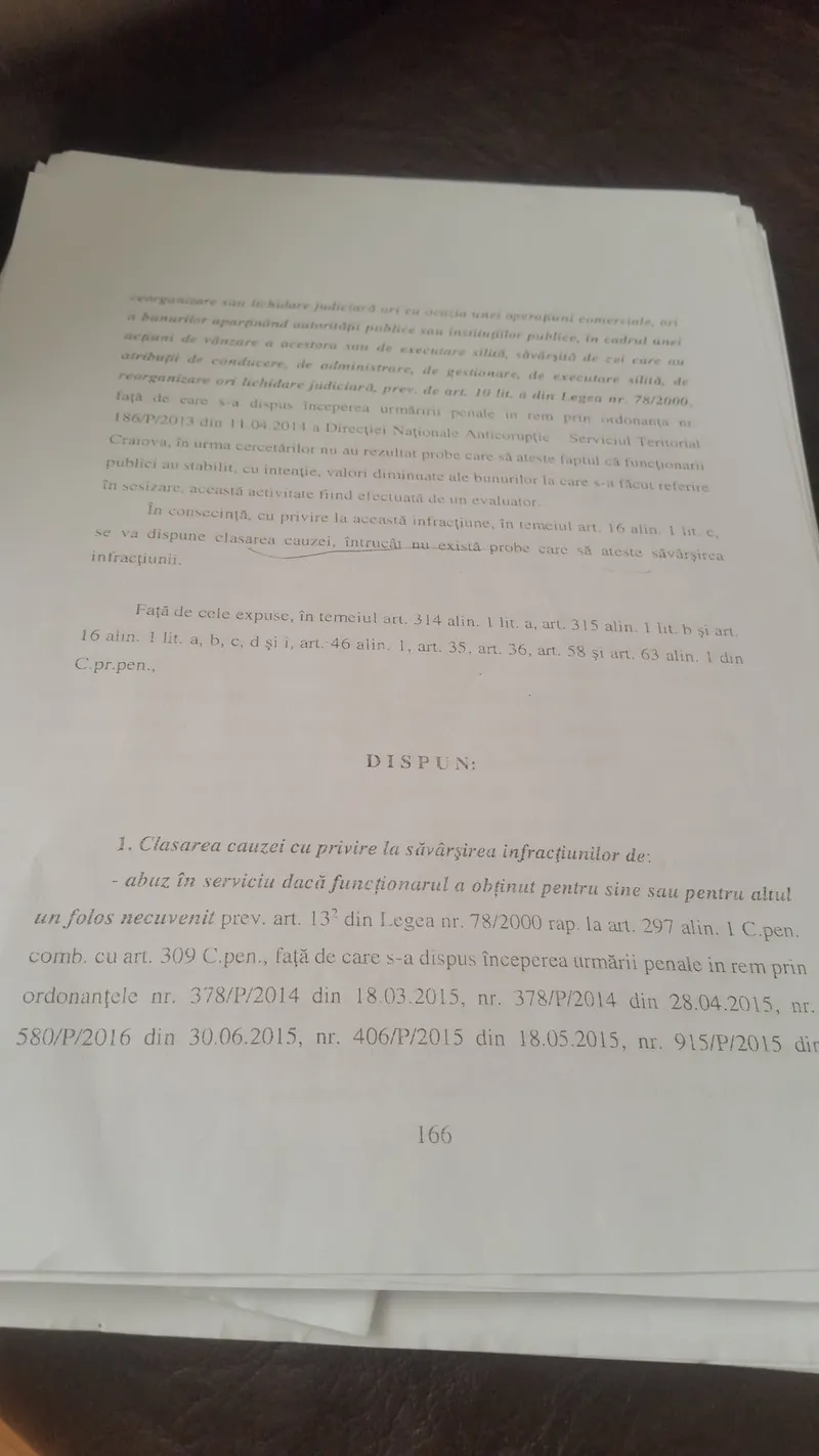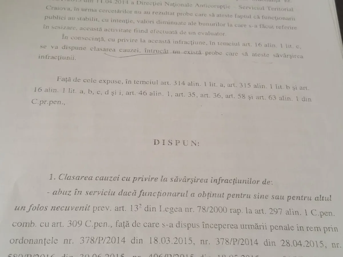 La începutul acestui an, mai exact prin Ordonanța din 28.01.2019, cu privire la aceste disjungeri, procurorul de caz, Dănuț Volintiru a dispus pe de o parte clasarea unor aspecte sesizate întrucât nu au existat pe lângă denunțuri și alte probe care să ateste săvârșirea unor infracțiunilor, precum și continuarea cercetărilor în alte dosare.