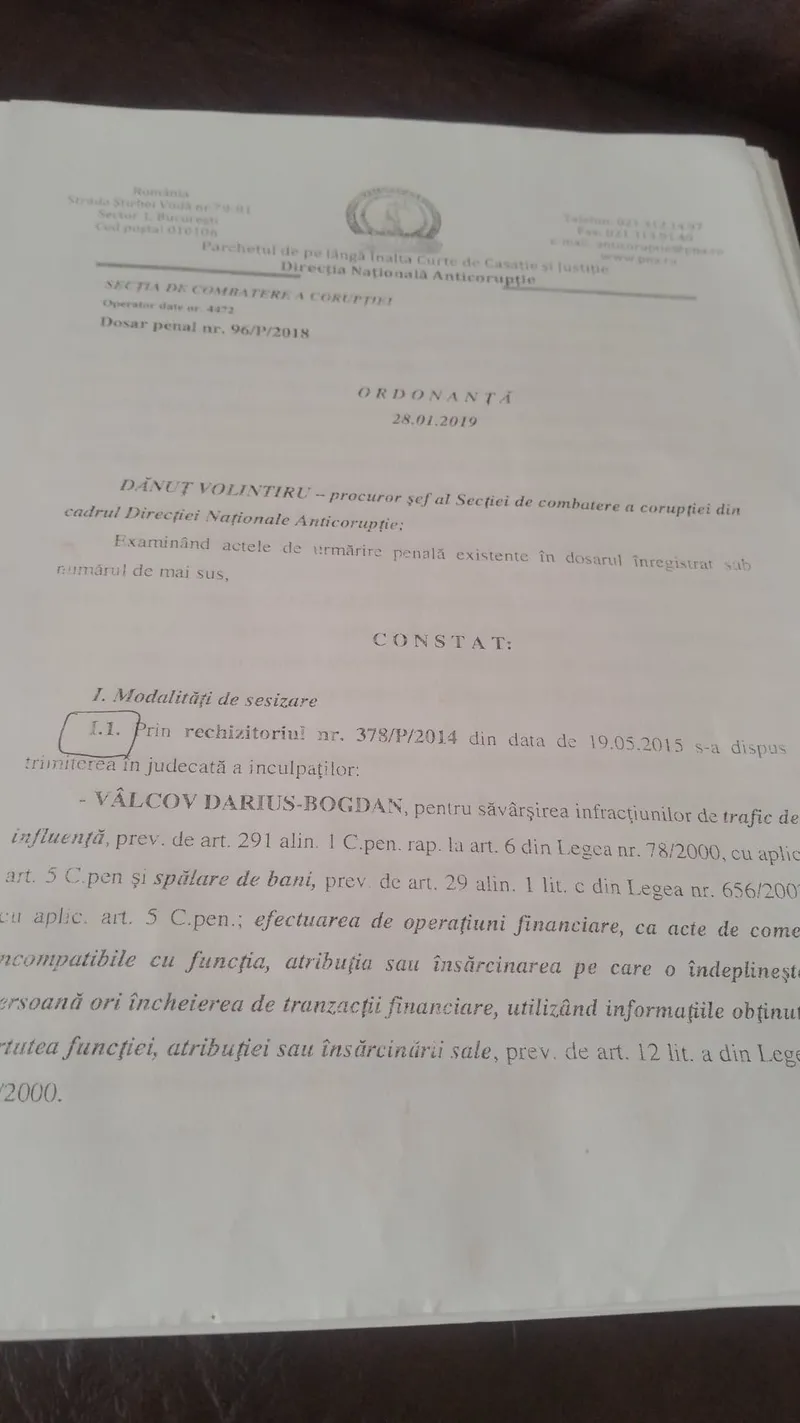Ea spune că toate cele cinci spețe de mai sus au legătură cu fapte din mandatele de primar ale lui Darius Vâlcov, potrivit ordonanței procurorului. Ana Maria Matei a publicat prima documentele pe care le reproducem în facsimil și a explicat, pentru Newsweek România, evoluția penală a lui Darius Vâlcov.