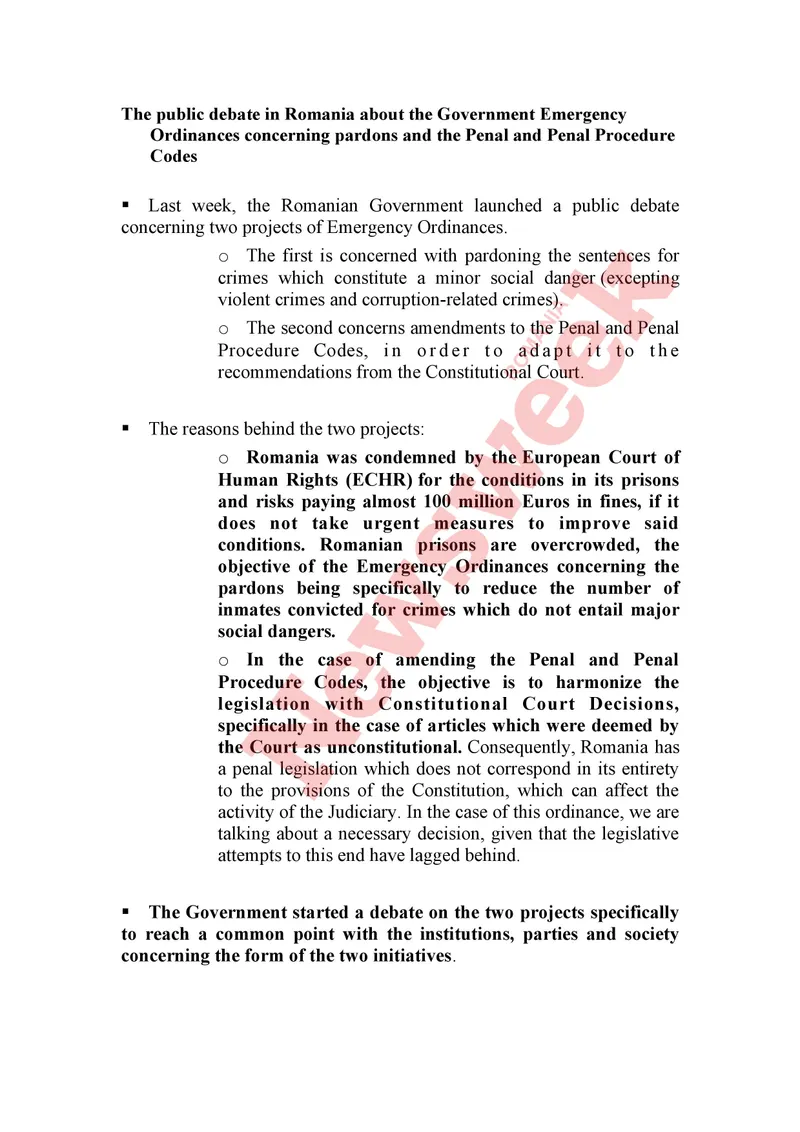 „Dezbaterea publică în România pe tema OUG-urilor privitoare la amnistie și grațiere și Codurile Penale
