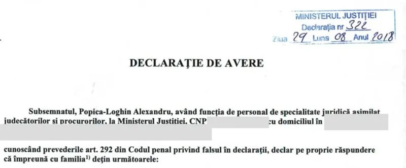 Popica Loghin a reușit să obțină postul și, în luna august 2018, a depus prima declarație de avere. Din document reiese că anterior nu avusese nici un loc de muncă și nici un venit. În 2015, el devenise avocat stagiar în cadrul Baroului Iași.