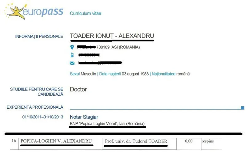 Cu toate acestea, pare că juniorul nu a fost atât de genial tot timpul. În 2017, a dat examen pentru a intra la doctorat la Universitatea "Alexandru Ioan Cuza", profesorul acontat în cazul în care lua examenul fiind același Tudorel Toader.