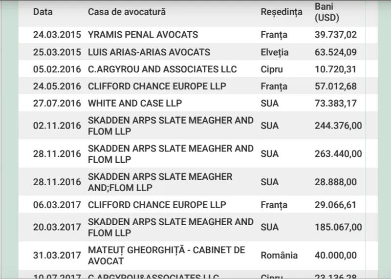 Pe 31 martie 2017, Vladimir Plahotniuc, "mogulul" moldovean, a plătit către avocatul român Gheorghiță Mateuț 40.000 de dolari, arată o investigație a RISE Moldova, care a consultat o bază de date scursă din Justiția de peste Prut. Plahotniuc a plătit și mulți avocați americani.