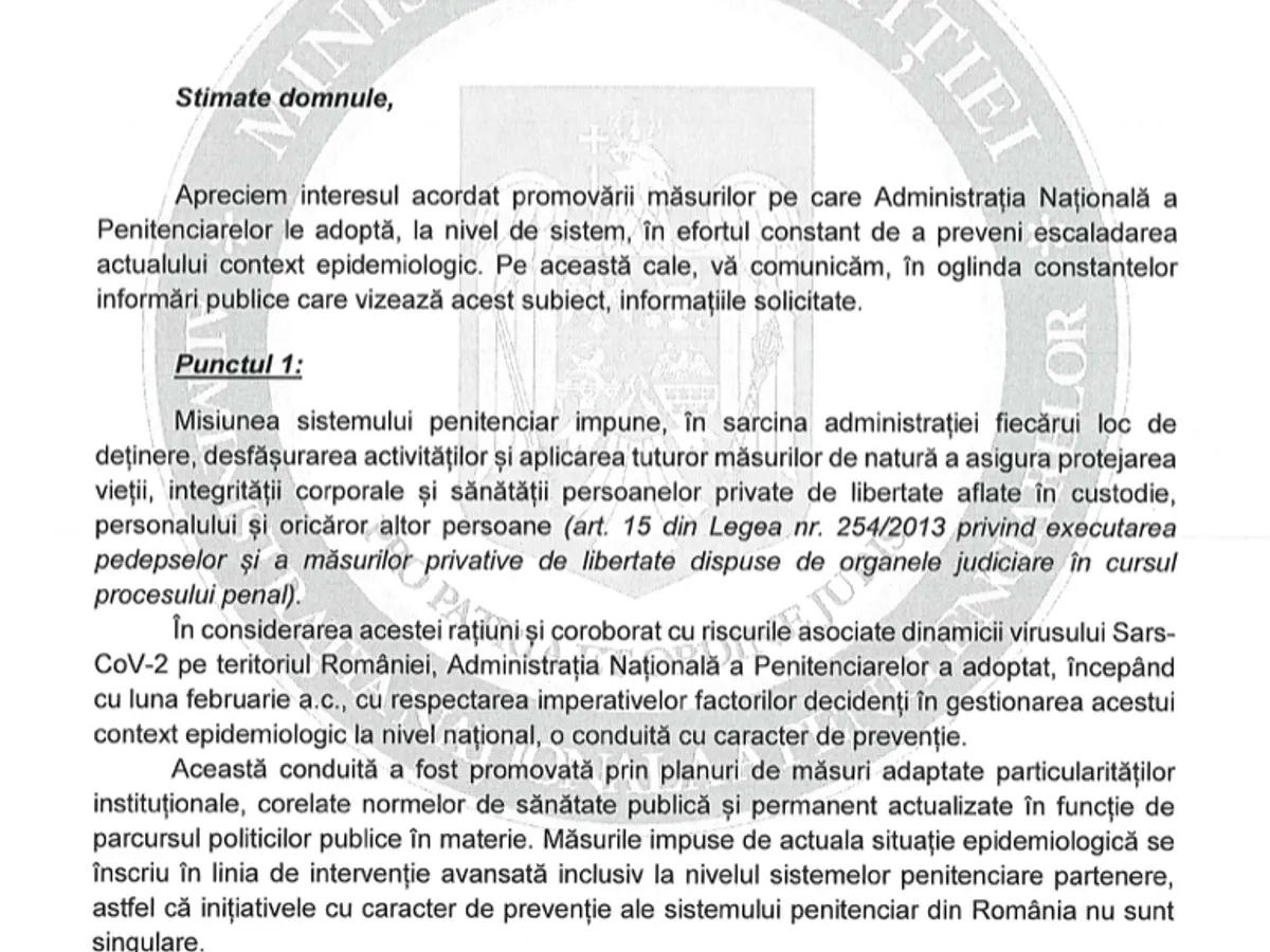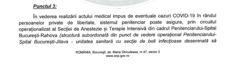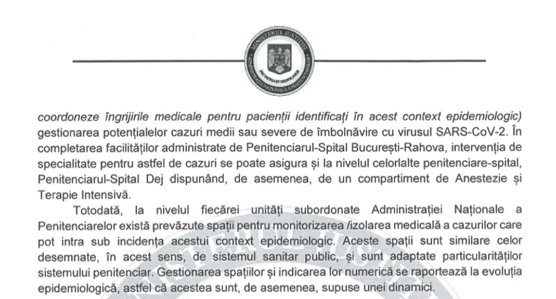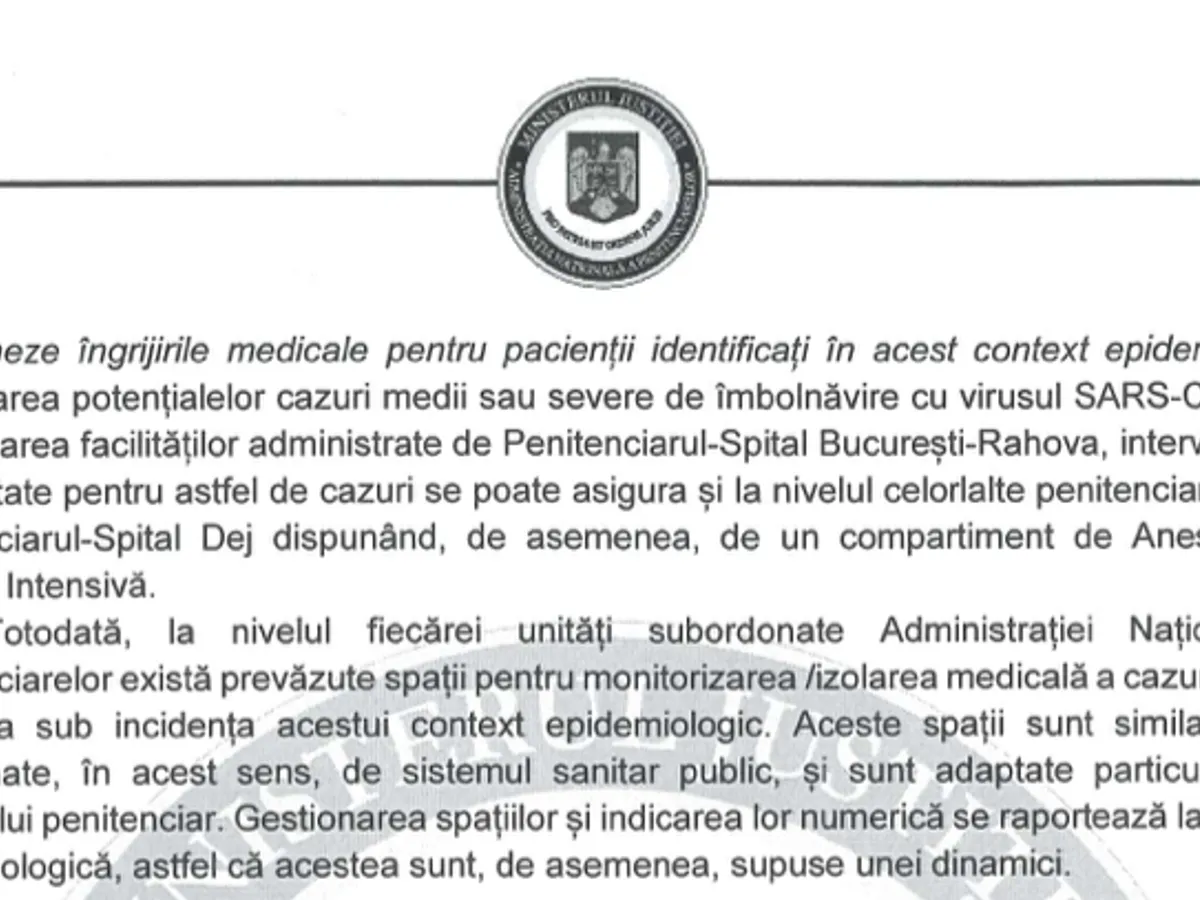„În considerarea acestei rațiuni și coroborat cu riscurile asociate dinamicii virusului Sars-Cov-2 pe teriotoriul României, Administrația Națională a Penitenciarelor a adoptat, începând cu luna februarie a.c., cu respectarea imperativelor factorilor decidenți în gestionarea acestui context epidemiologic la nivel național, o conduită de prevenție", a transmis Biroul de Presă al ANP.