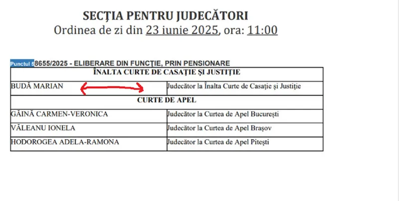 Potrivit unui anunț oficial, cererea de pensionare a lui Marian Budă va fi dezbătută în cursul zilei de luni: