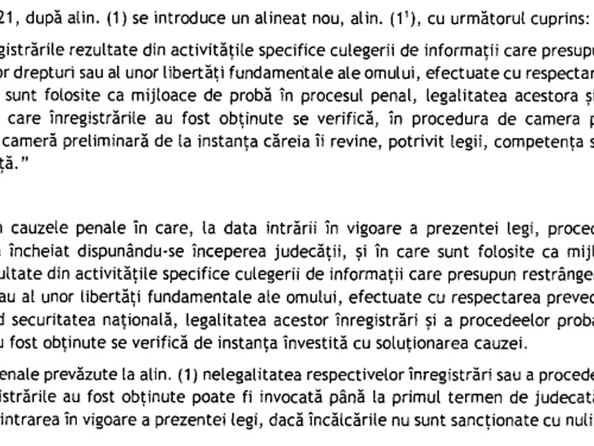 În plus, modificarea propusă de Predoiu vizează și preluarea în Codul de Procedură Penală (CPP) a Deciziei 55/2020 a Curții Constituționale a României (CCR), care, în urmă cu câteva luni, a declarat neconstituţional art.139 alin.(3) referitor la folosirea, în procesele penale, a interceptărilor SRI pe mandate de siguranță națională.