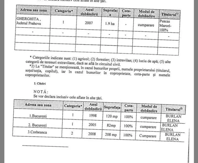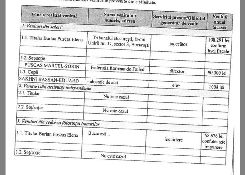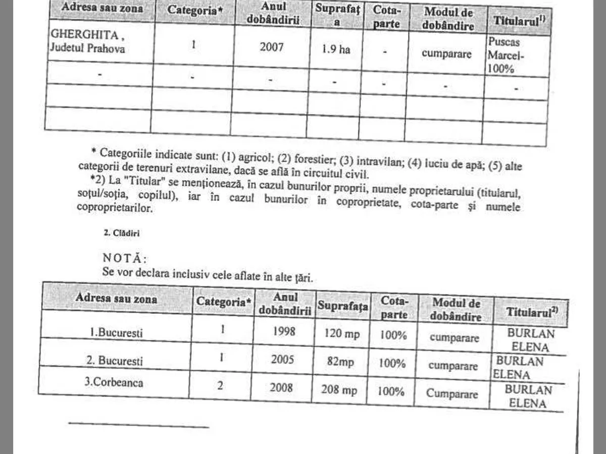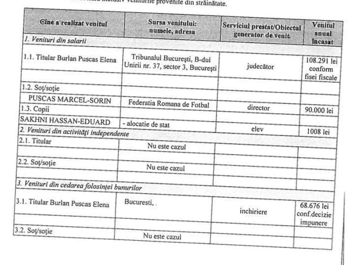 Și soțul judecătoarei, Marcel Pușcaș, un personaj cunoscut în lumea fotbalului, deține un apartament în București și o casă de locuit, de 640 de metri pătrați, în Austria. De altfel, conform documentului citat, pe lângă salariu, Elena Burlan-Pușcaș își rotunjește veniturile din închirierea locuințelor pe care le deține în București, din care primește, anual, 68.676 de lei, adică aproximativ 15.000 de euro.